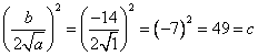 Aquí, a = 1, b = – 14, y c = 49. Tenemos: