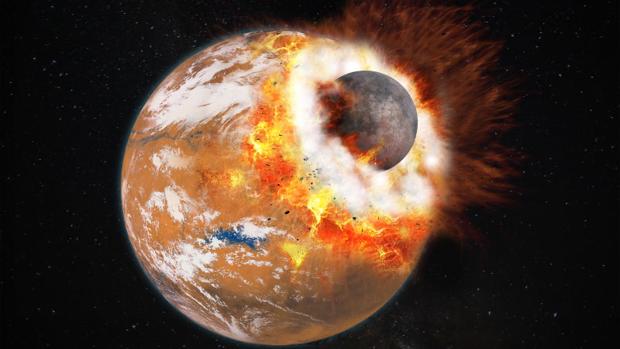 La teoría del impacto ha sido reproducida con ayuda de ordenadores, simulando un choque con un objeto cuyo tamaño sería equivalente al de Marte, y que, con una velocidad inferior a los 50.000 km/h, posibilitaría la formación de un satélite.