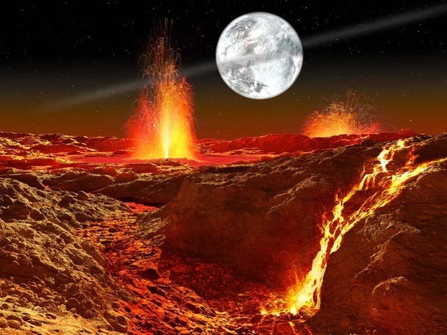 Fue en este eón, que duró unos 500 millones de años, que, fruto de una colisión de un asteroide inmenso (del tamaño de Marte), se formó la Luna, que fueron los restos eyectados de este impacto. También se formó la atmósfera primaria debido a la actividad volcánica (no había todavía oxígeno) y, a causa de la condensación del vapor de agua y de la llegada de meteoritos con hielo, se empezaron a formar los océanos, cuando ya se había formado una primitiva corteza terrestre, claro.