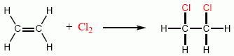 El cloro y el bromo se adicionan a alquenos para dar 1,2-dihaloalcanos. Por ejemplo, el 1,2-dicloroetano es sintetizado por la adición de cloro a eteno